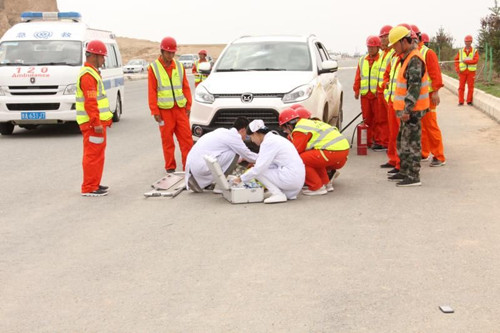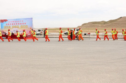 6月16日,兰州新区纬一起东延伸改建段项目以清静生产月为契机开展100余人加入的蹊径交通应抢救援演练运动 。