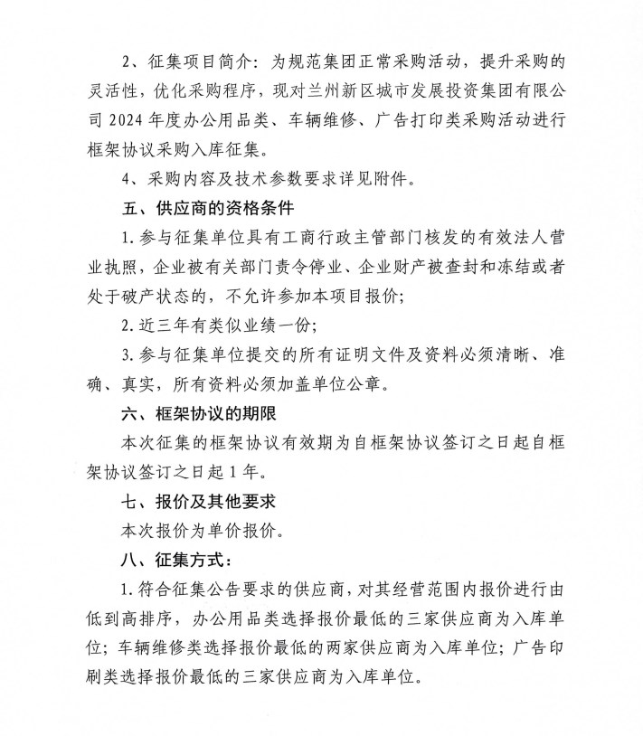 3044am永利集团2024年度办公用品类、车辆维修、广告印刷类框架协议采购项目入库征集