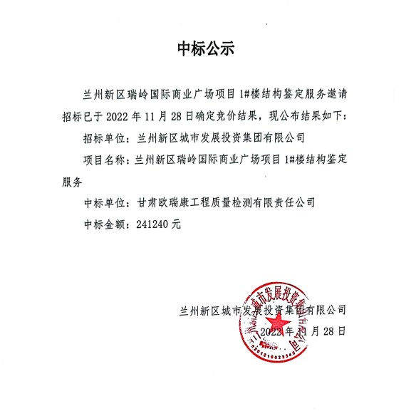 • 中标公示